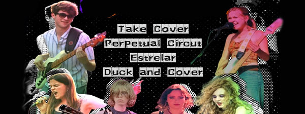 TAKE COVER Take Cover is a 3 piece indie-alternative band made up of from best friends who like to make loud noises together. With Drew Warm on drums, Mica Jordan on guitar and vocals, and Kylie Schwegman on bass and vocals, they bring a range of collected clean tones to gritty distortion.